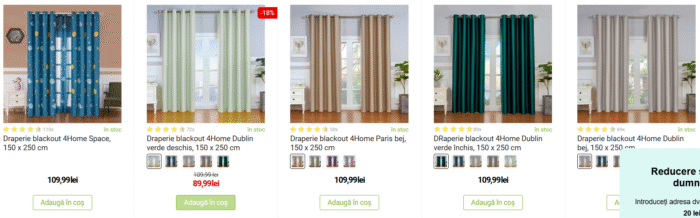 - Prețuri: De la 20 la 450 lei pentru un set de 2 perdele sau draperii